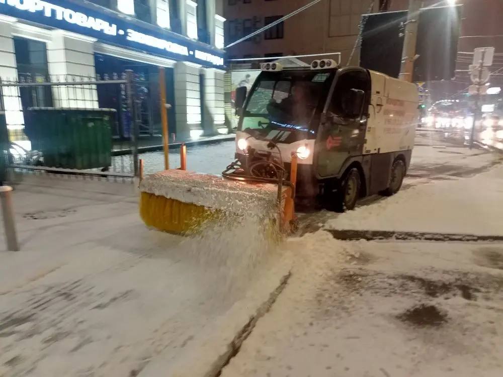 Ночью 26 единиц техники обработали путепроводы от гололедицы. Было использовано около 42 тонн песко-соляной смеси.