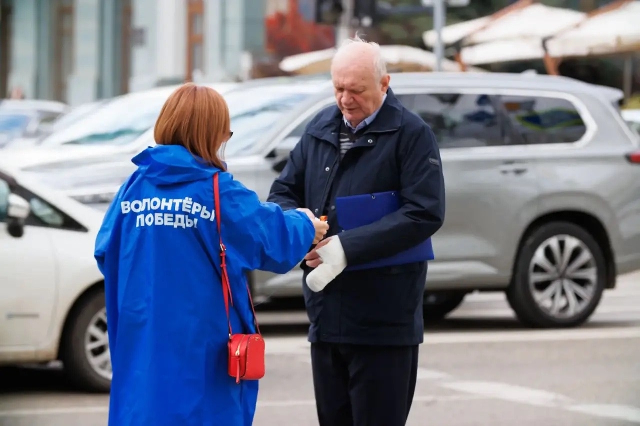 Каждый житель и гость города может получить частичку Победы — георгиевскую ленточку. Это наше уважение к ветеранам, дань памяти павшим и благодарность всем, кто воевал за мир.