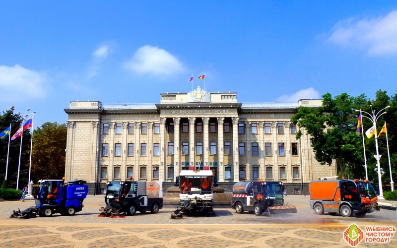 Механизированная очистка дороги на ул. Кубанская Набережная автомобилем RAVO-540 ST