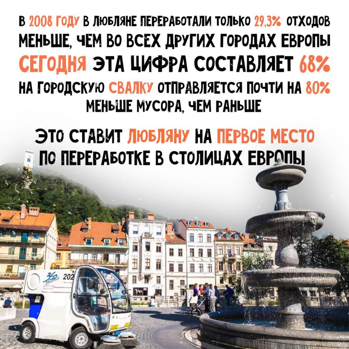 В 2008 году в Любляне переработали только 29,3% отходов – меньше, чем в других городах Европы. Сегодня эта цифра составляет 68%, а на городскую свалку отправляется почти на 80% меньше мусора, чем раньше. Это ставит Любляну на первое место в списке лидеров по переработке в столицах ЕС. ⠀