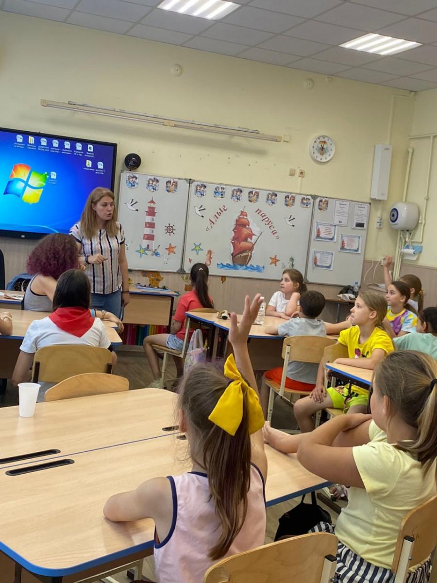 Вчера прошел урок экологического просвещения для двух потоков детей в школьном лагере МАОУ гимназия № 54. Урок ребятам провела руководитель пресс-службы регионального оператора Елена Штеля.