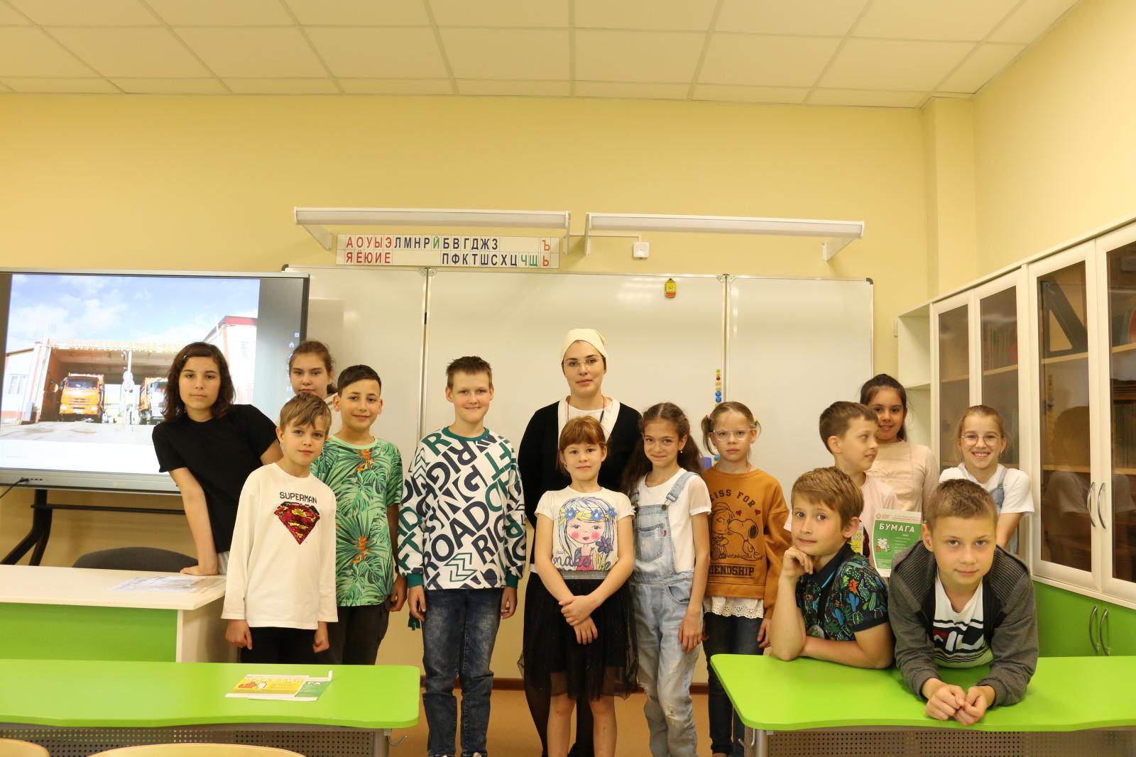 Сотрудники АО «Мусороуборочная компания» провели сразу пять уроков экологической грамотности для пяти отрядов летнего лагеря гимназии №92 .