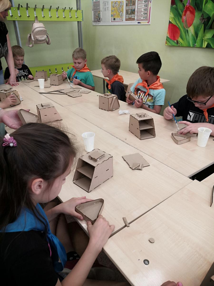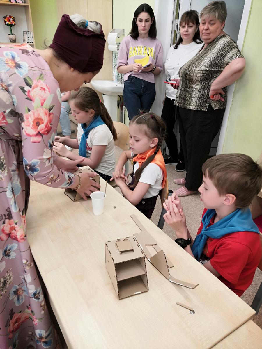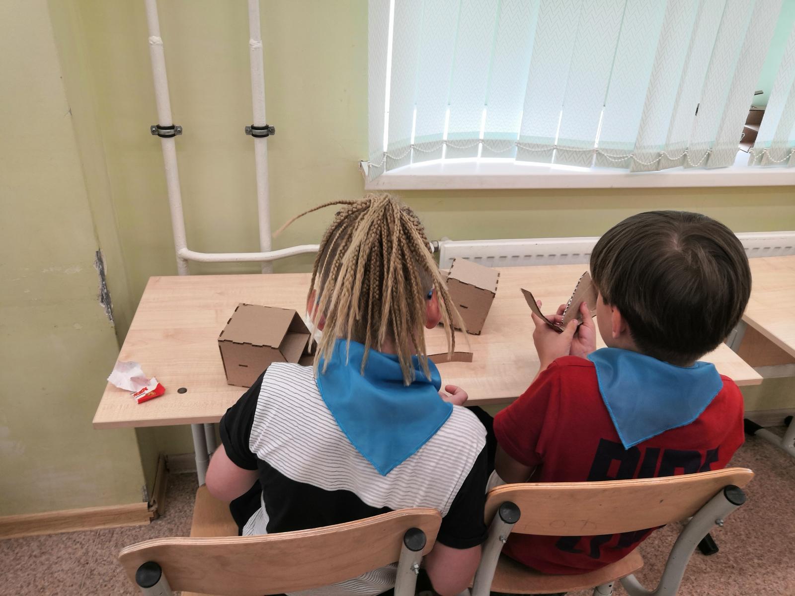 Увидев разложенные детали, ребята сразу догадались, что их ждет необычный урок. С большим интересом мальчишки и девчонки делали робота-уборщика из вторичного картона. На вид простая конструкция потребовала от ребят собранности и внимания. Не у всех получилось с первого раза склеить детали правильно. Но в итоге - у каждого готовый картонный робот, созданный своими руками.
