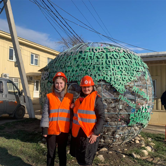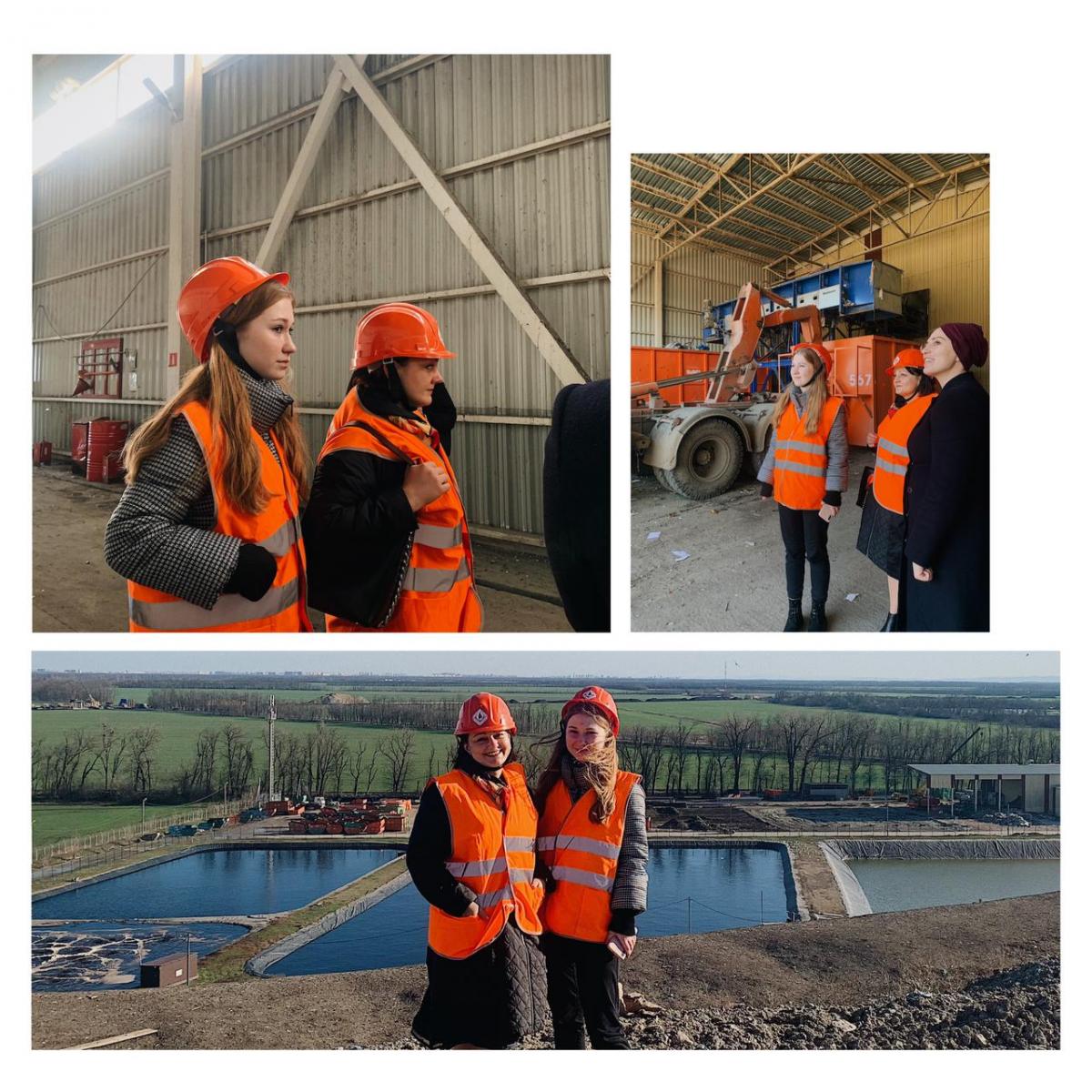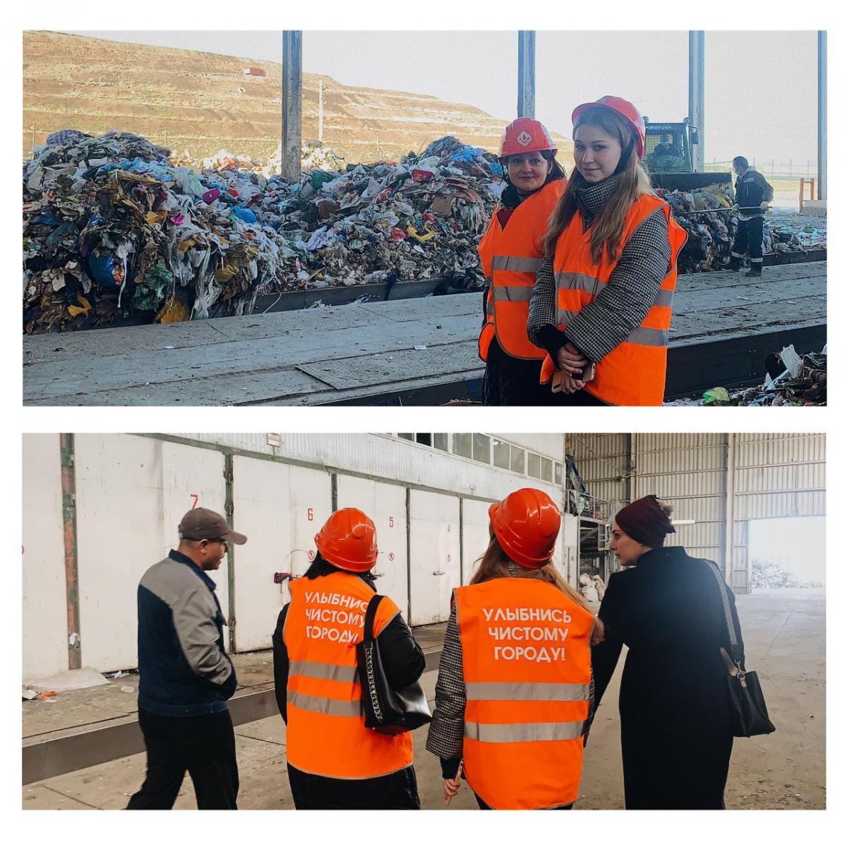 Они увидели резервуары для очистки фильтрата, стекающего с полигона. Это 4 лагуны, где происходит процесс барботации и очистки фильтрата. Эту воду мы используем вторично для смачивания поверхности террас полигона. Мы показали Марианне и Елене Анатольевне весь цикл, который проходят отходы, когда попадают на полигон. Они увидели цех сортировки, где происходит досортировка, раздельно собранных жителями города, отходов.
