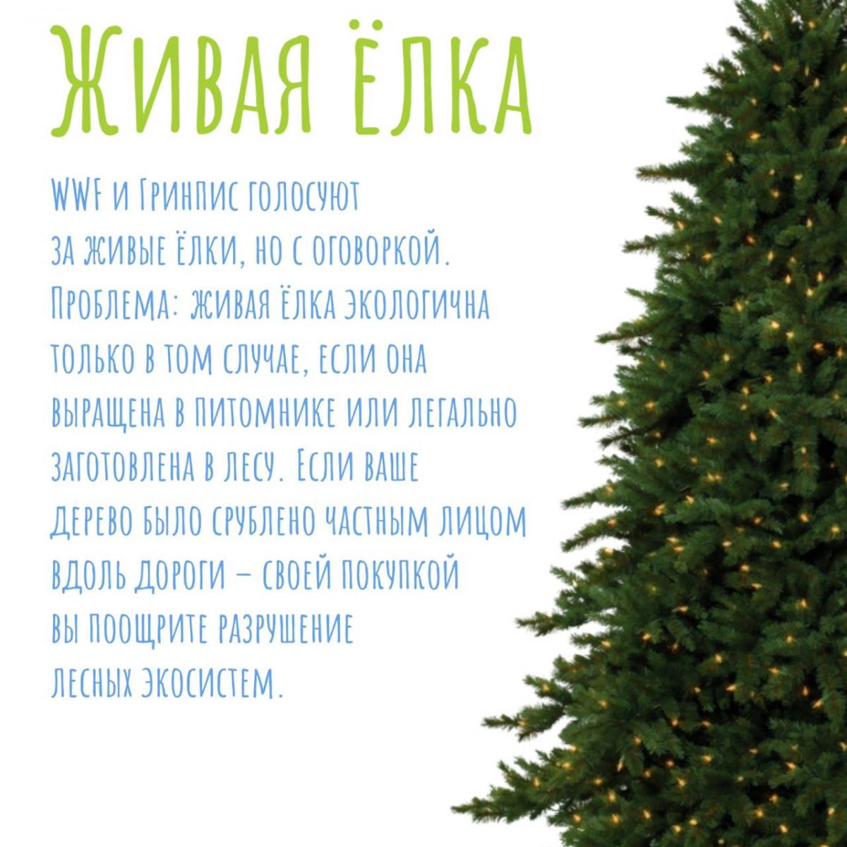 Проблема: живая ёлка экологична только в том случае, если она выращена в питомнике или легально заготовлена в лесу. Если ваше дерево было срублено частным лицом вдоль дороги – своей покупкой вы поощрите разрушение лесных экосистем.