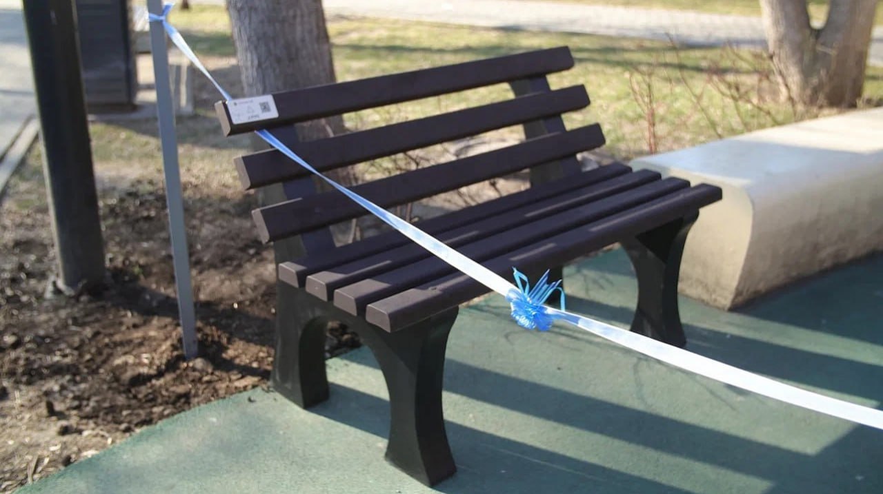 Лавочку из переработанных крышек поставили на бульваре Дальнем в Краснодаре
