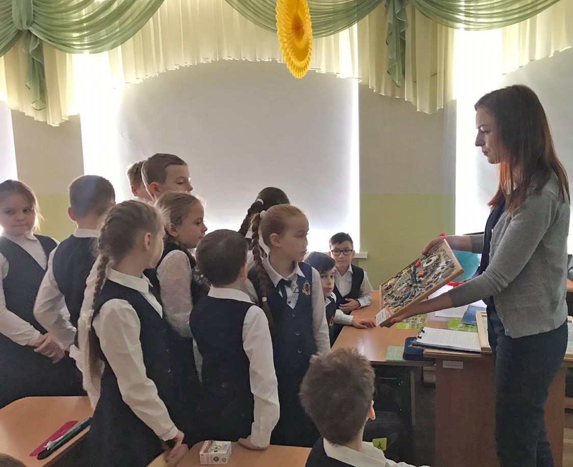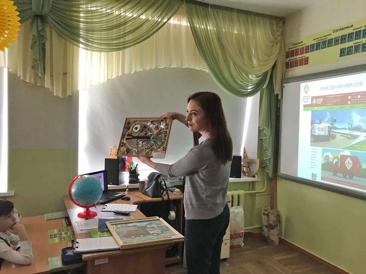 Также А.Е. Солоницкая пригласила учеников создать собственные произведения из мусора и поучаствовать в конкурсе нашей компании «Картинки из мусорной корзинки 2019». Этот конкурспроводится компанией уже третий год подряд. Ребята очень удивились, увидев картины - победители прошлогоднего конкурса: они даже не представляли, что из обычных пуговиц, крючков, болтиков, старой молнии, резаной бумаги, битого стекла или старых газет и журналов можно, с помощью фантазии, создать по настоящему яркие и интересные творческие произведения.