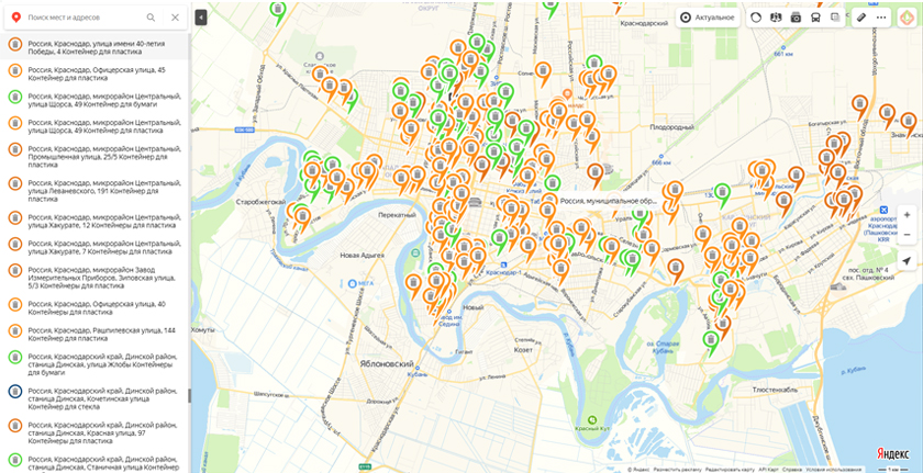 Обновлена интерактивная карта контейнеров для раздельного сбора отходов в Краснодаре