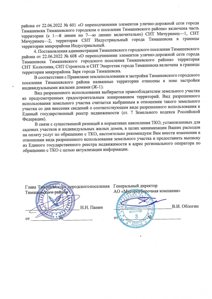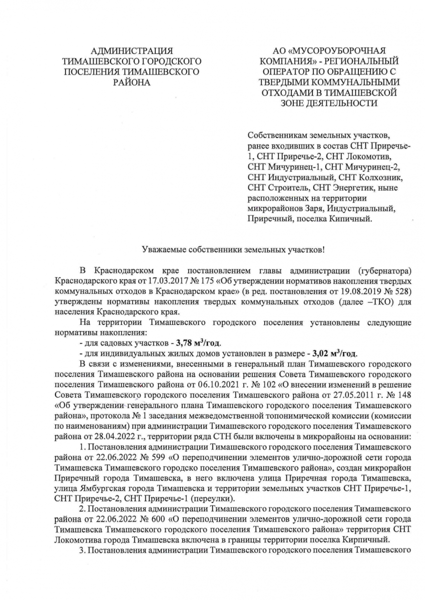 Обращение к собственникам земельных участков бывших СНТ города Тимашевска