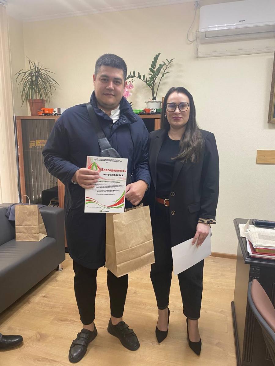 Сегодня в АО "Мусороуборочная компания" прошли праздничные мероприятия, на которых были отмечены заслуги и достижения сотрудников компании. В честь профессионального праздника были вручены благодарственные письма и подарки тем, кто особенно отличился в своей работе.