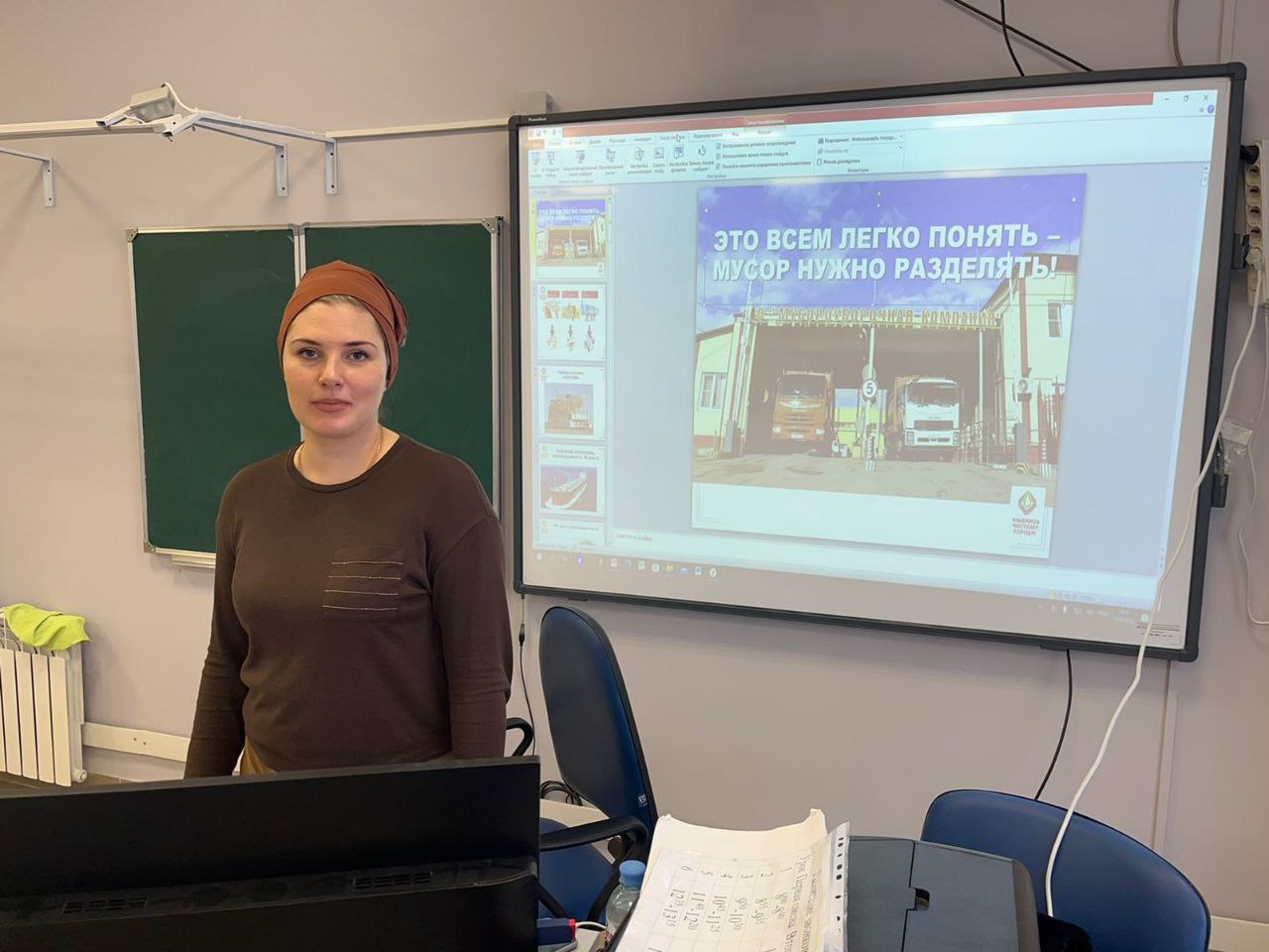 В ходе внеклассного часа руководитель PR-службы АО «Мусороуборочная компания» Елена Штеля совместно с председателем правления ККОО ЭД «Зеленый край» Юлией Супруновой объяснили ребятам, что экологические проблемы касаются абсолютно всех и даже школьник может внести вклад в общее дело сохранения природы.