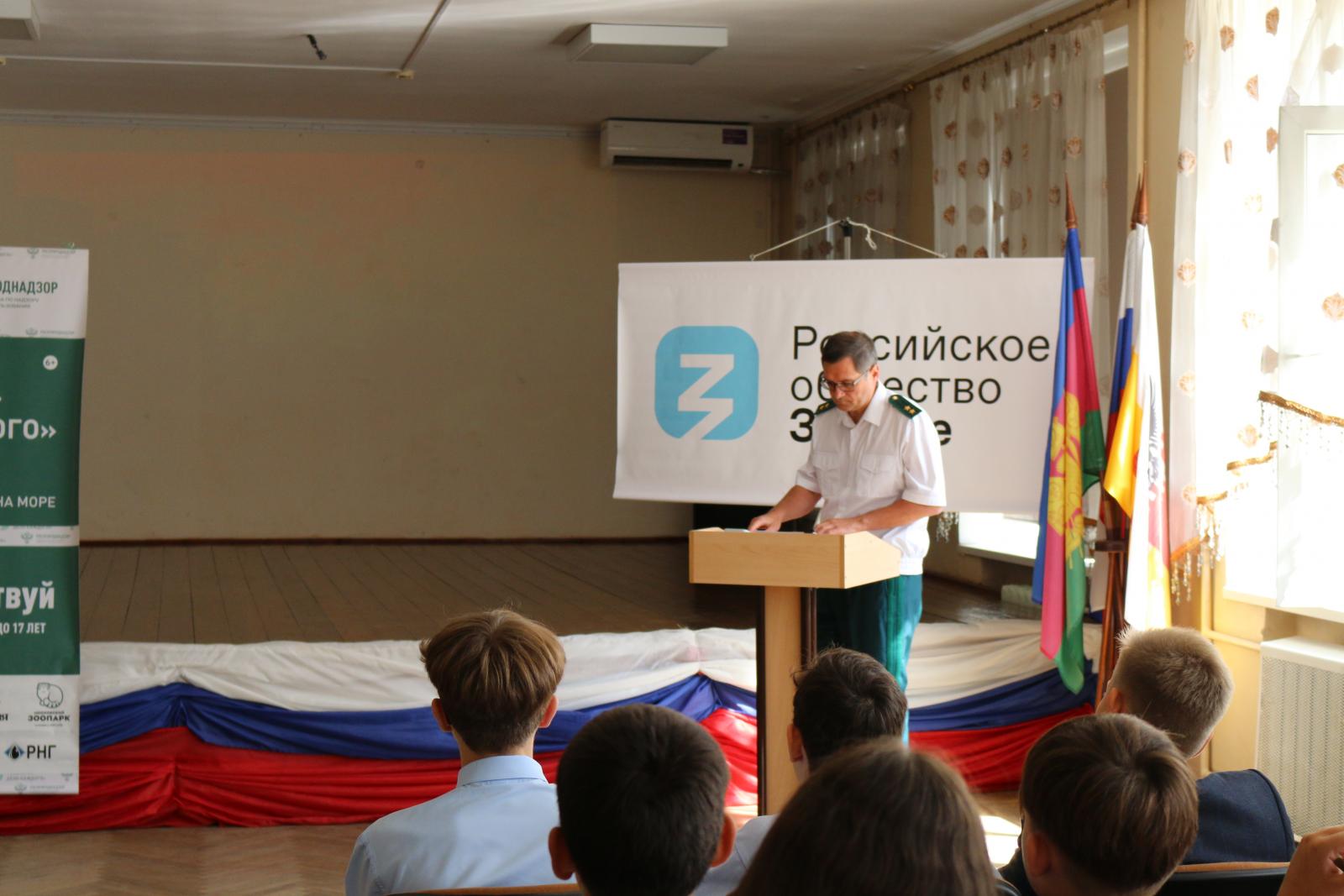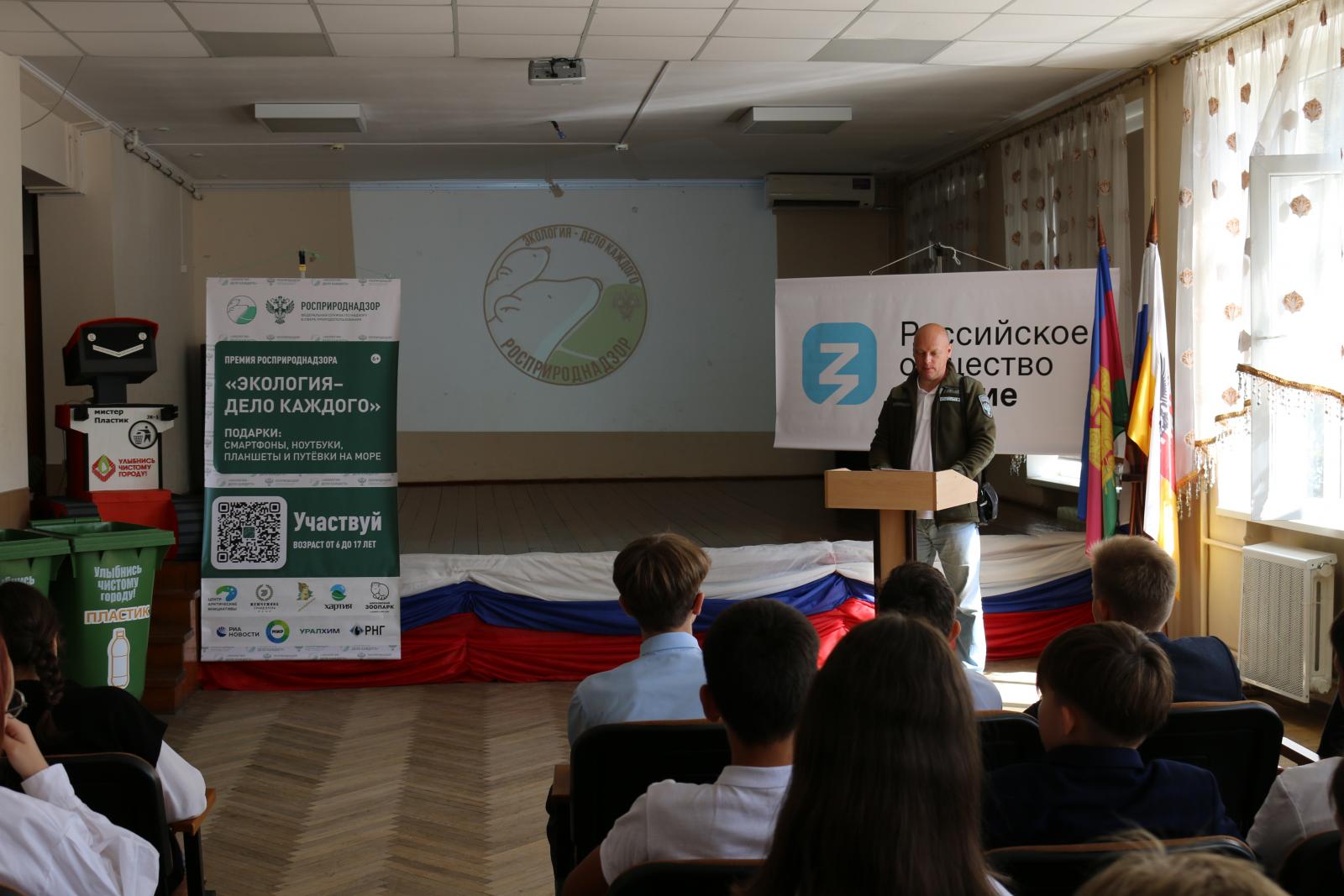 Руководитель Южного межрегионального управления службы Роман Александрович Молдованов выступил с приветственным словом. Он рассказал ребятам о важности экологии и экологических знаний для каждого человека. Начальник отдела экологического надзора Управления Росприроднадзора по Краснодарскому краю и Республике Адыгея Евгений Александрович Порфирьев рассказал школьникам о том, что такое экология и для чего она нужна. Какие существуют ресурсы и почему их важно сохранять и беречь.