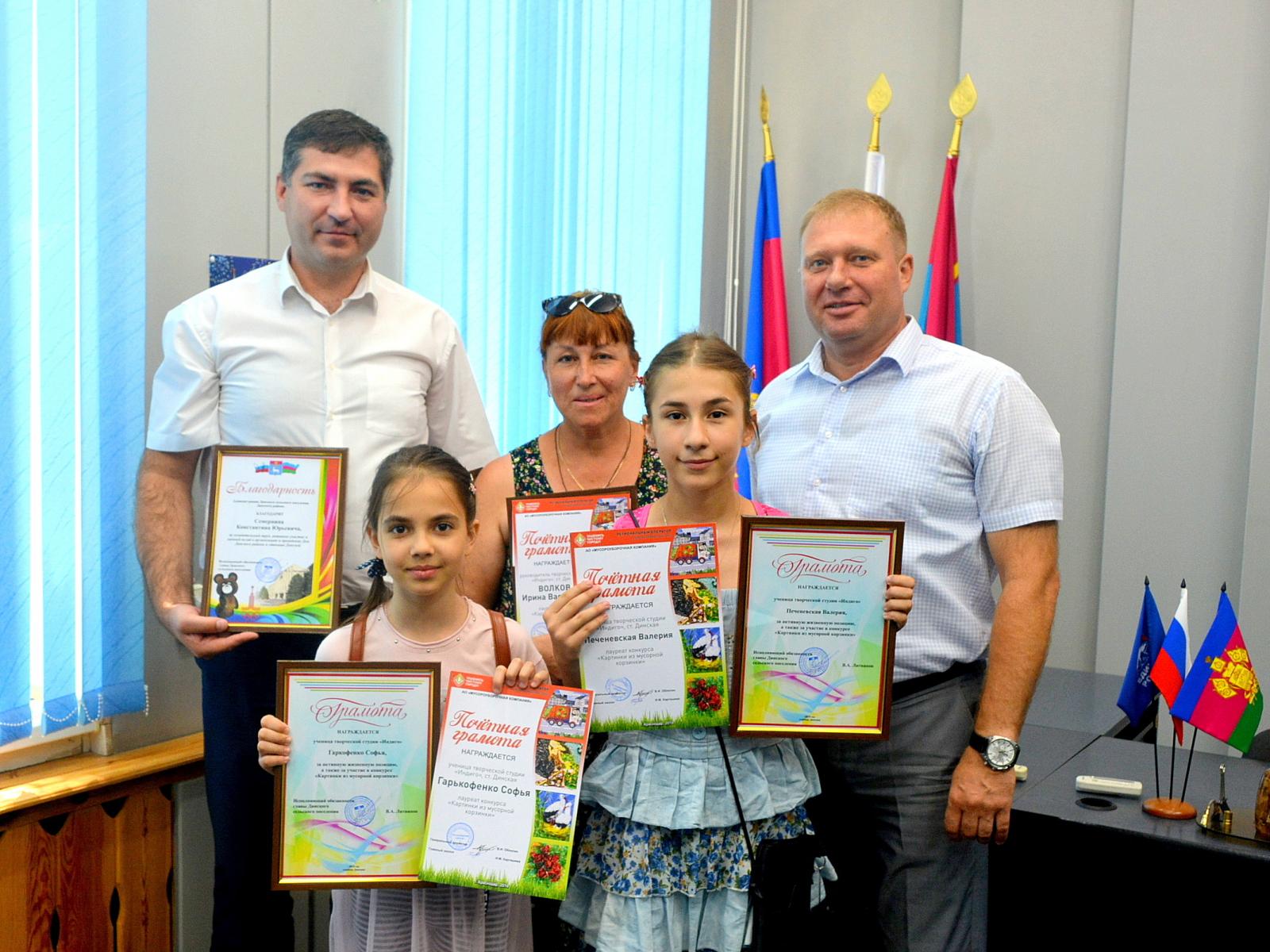 С момента получения статуса Регионального оператора мы больше узнали об АО «Мусороуборочная компания», о специфике и особенностях работы, и особо приятно были удивлены, что в рамках своей деятельности компания проводит подобные мероприятия, очень интересные и полезные. Наших девочек – участниц конкурса в официальной обстановке наградили Литвинов Виталий Андреевич, исполняющий обязанности главы Динского сельского поселения, и Семернин Константин Юрьевич, представитель Регионального оператора АО «Мусороуборочная компания». Вручили им почетные грамоты и призы за участие.