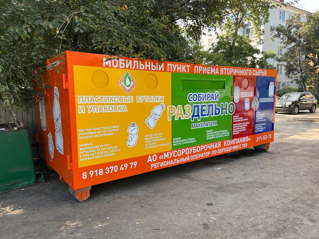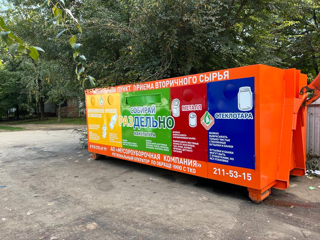 АО «Мусороуборочная компания» продолжает работу по установке в городе Краснодаре мобильных пунктов под раздельный сбор мусора. 28 сентября третий по счету пункт был установлен по адресу ул. Гидростроителей, 19/1.