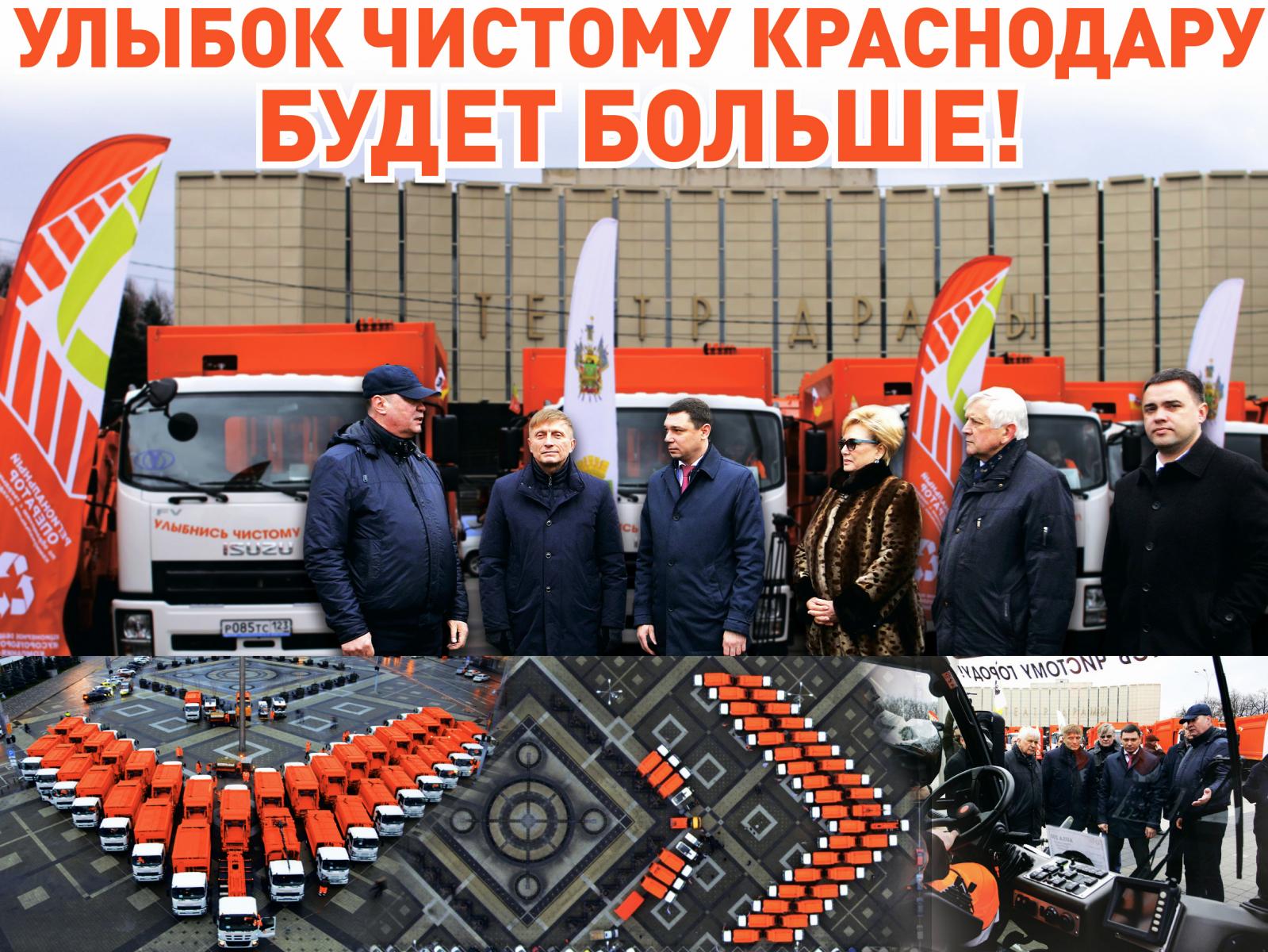 Парад состоялся на Театральной площади г. Краснодара в присутствии представителей администрации города. Мэр столицы Кубани Е.А. Первышов и председатель городской Думы г. Краснодара В.Ф. Галушко отметили новую технику, ее особенности и пользу для города. Представители администрации отметили маневренность, практичность и преимущества новых специализированных автотранспортных средств по вывозу и транспортировке отходов, а также подметально-уборочных машин.