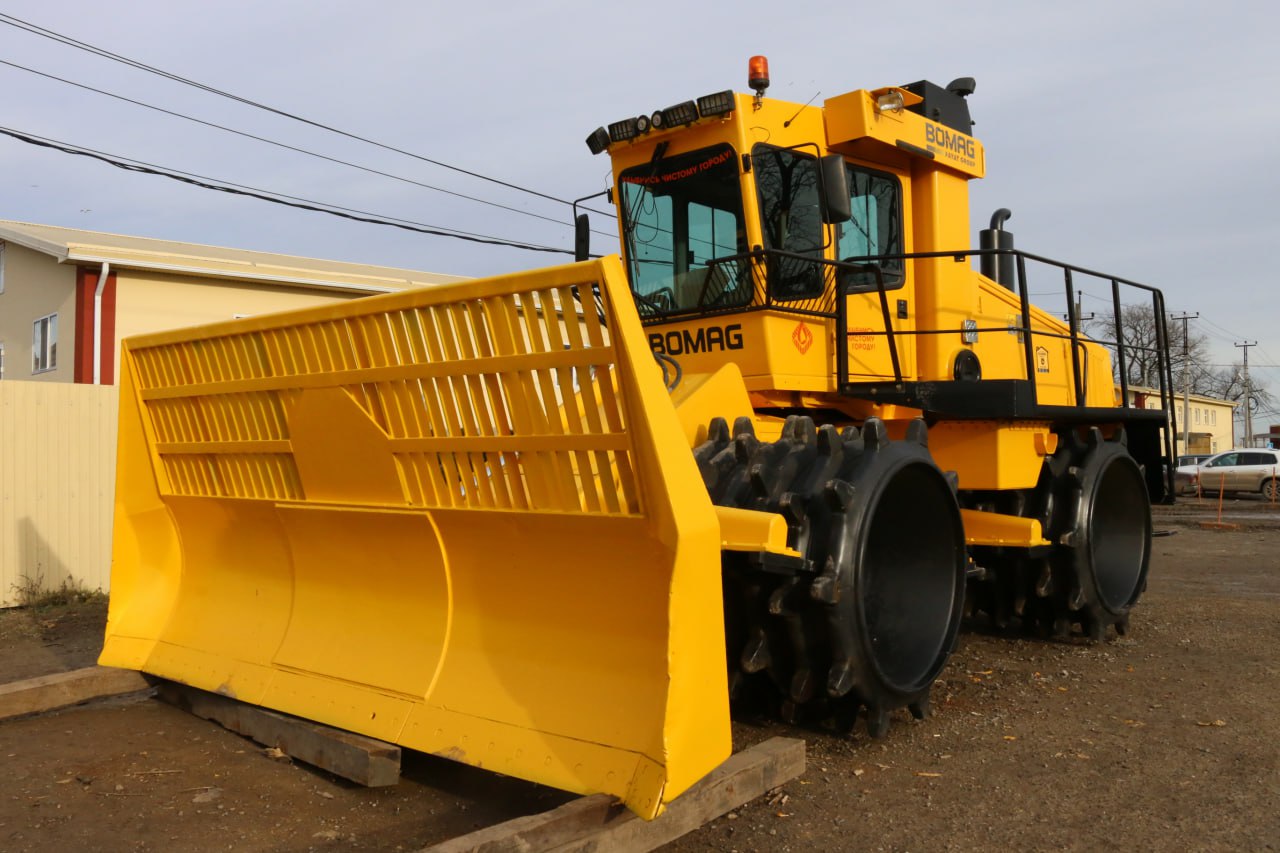 С 2019 года АО «Мусороуборочная компания» использует в своей работе спецтехнику фирмы Бомаг. В частности, речь идёт о компакторах — это специализированные катки, которые уплотняют отходы на полигонах. Такие машины широко применяются по всему миру.