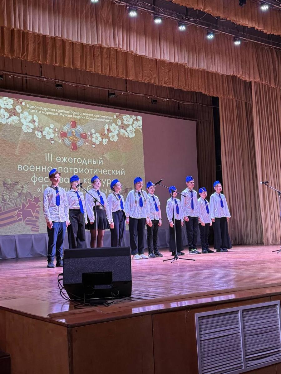 Юные Жуковцы приняли участие в краевом военно-патриотическом фестивале "Песни Победы", который прошел в городе Краснодаре. Организатором фестиваля выступила краевая общественная организация памяти маршала Г.К. Жукова.