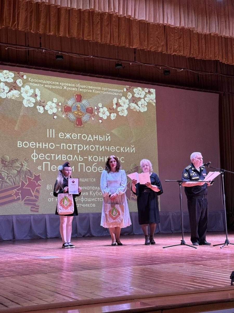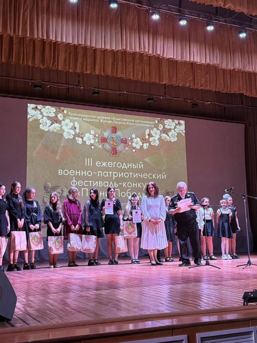 В отборе на фестиваль приняли участие коллективы художественной самодеятельности со всего Краснодарского края. После отбора были определены победители и призеры в разных возрастных группах и номинациях. После подведения итогов отборочного этапа, дети были приглашены на очный этап "Песен Победы". Этот фестиваль не оставил равнодушным ни одного зрителя.