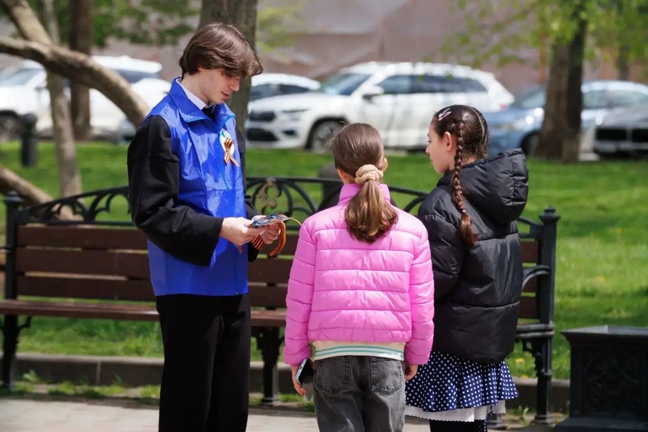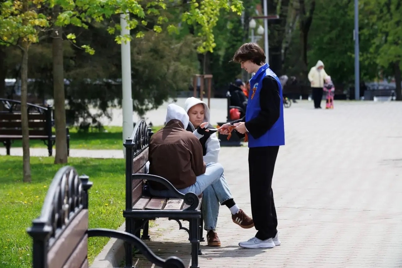 Каждый житель и гость города может получить частичку Победы — георгиевскую ленточку. Это наше уважение к ветеранам, дань памяти павшим и благодарность всем, кто воевал за мир.
