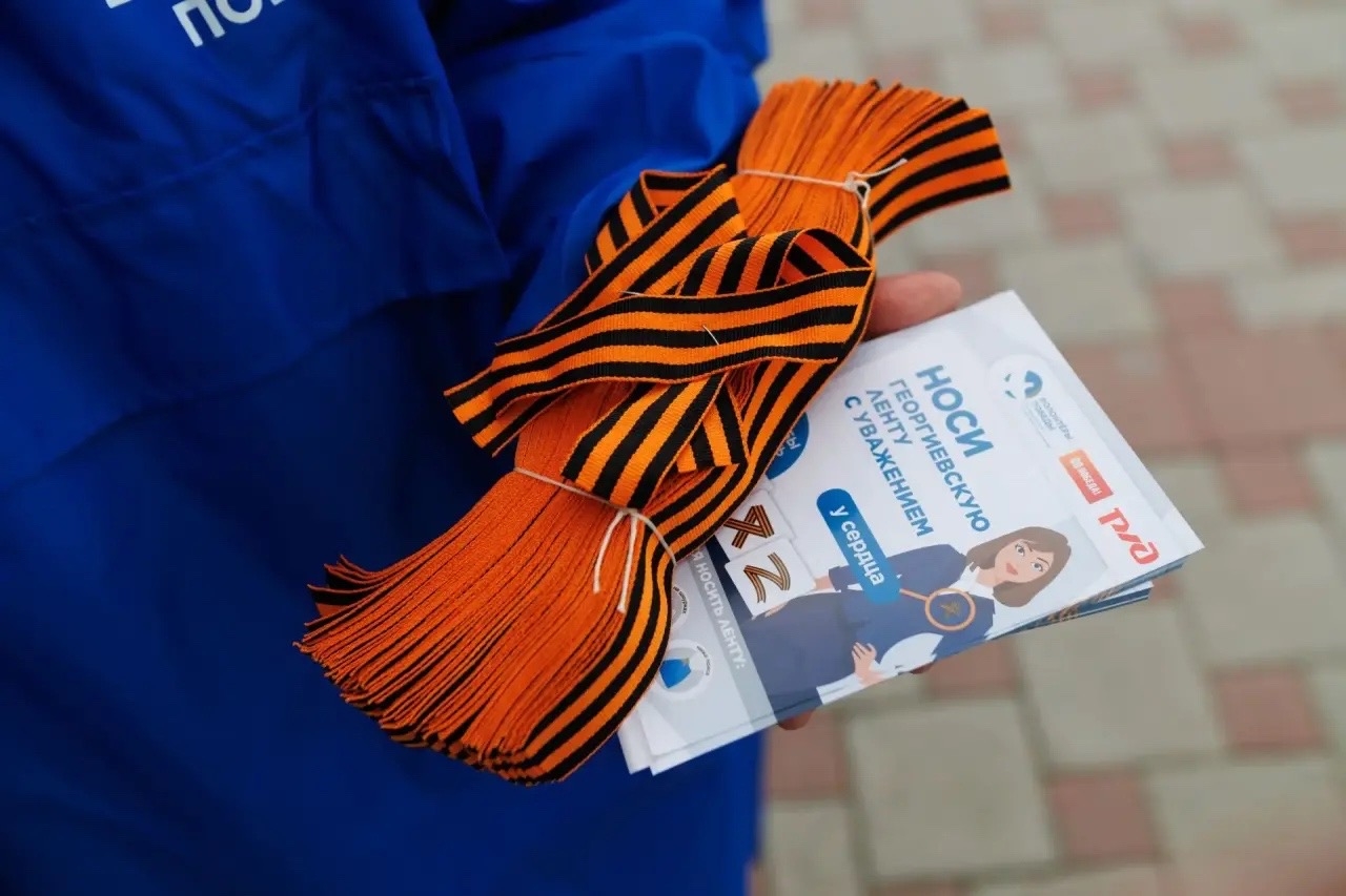 Что важно, волонтёры не просто раздают чёрно-оранжевые ленты, но и рассказывают об их истории, значении и правилах ношения. Около сотни молодых ребят-добровольцев раздадут свыше 180 тысяч ленточек.