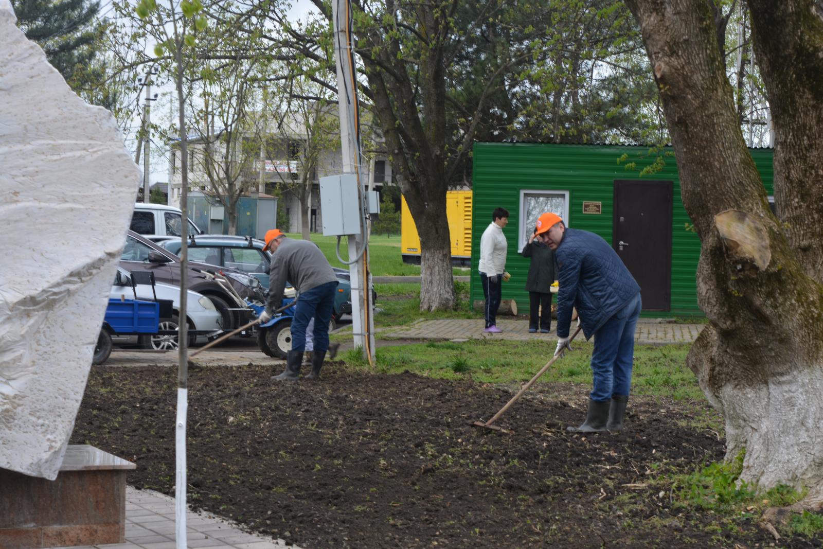Также вместе с динчанами в Комсомольском парке поработали глава Динского района Е.Н. Пергун, депутат Законодательного Собрания Краснодарского края С.И. Орлов и глава Динского сельского поселения В.А. Литвинов. Они высаживали молодые саженцы туи, можжевельника и липы.
