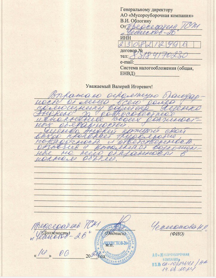 К нам часто поступают обращения от жителей и гостей города с различными просьбами. Недавно мы получили письмо от жителей «Чекистов-26», которые написали: «Андрей Яценко каждый свой день на работе демонстрирует трудолюбие, порядочность и ответственность».