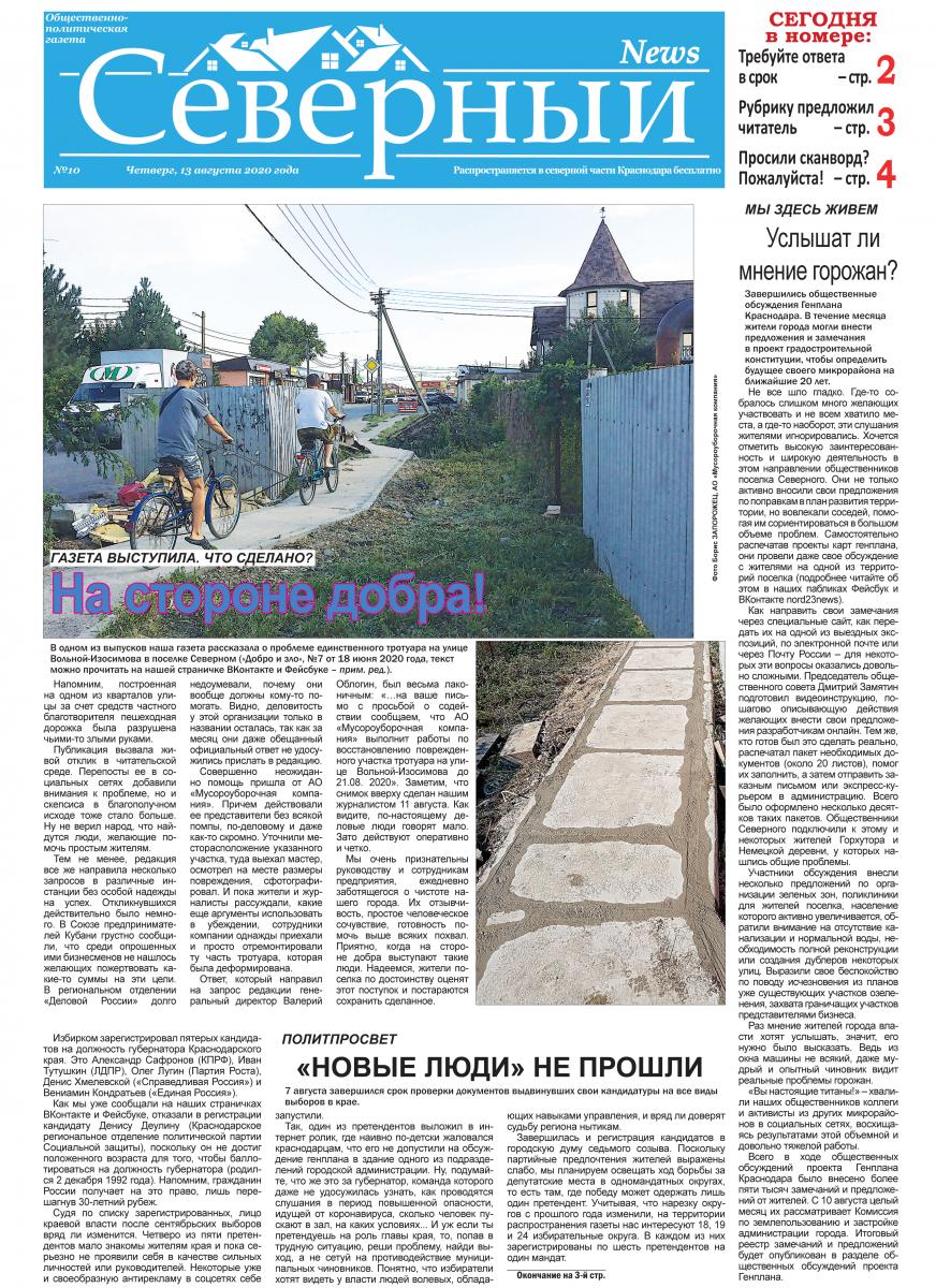 ГАЗЕТА ВЫСТУПИЛА – ЧТО СДЕЛАНОВ одном из выпусков наша газета рассказала о проблеме единственного тротуара на улице Вольной-Изосимова в поселке Северном («Добро и зло», №7 от 18 июня 2020 года – прим. ред.). Напомним, построенная на одном из кварталов улицы за счет средств частного благотворителя пешеходная дорожка была разрушена чьими-то злыми руками. Публикация вызвала живой отклик в читательской среде. Перепосты ее в социальных сетях добавили внимания к проблеме, но и скепсиса в благополучном исходе тоже стало больше. Ну не верил народ, что найдутся люди, желающие помочь простым жителям. Тем не менее, редакция все же направила несколько запросов в различные инстанции без особой надежды на успех. Откликнувшихся действительно было немного. В Союзе предпринимателей Кубани грустно сообщили, что среди опрошенных ими бизнесменов не нашлось желающих пожертвовать какие-то суммы на эти цели. В региональном отделении «Деловой России» долго недоумевали, почему они вообще должны кому-то помогать. Видно, деловитость у этой организации только в названии осталась, так как за месяц они даже обещанный официальный ответ не удосужились прислать в редакцию. Совершенно неожиданно помощь пришла от АО «Мусороуборочная компания». Причем действовали ее представители без всякой помпы, по-деловому и даже как-то скромно. |