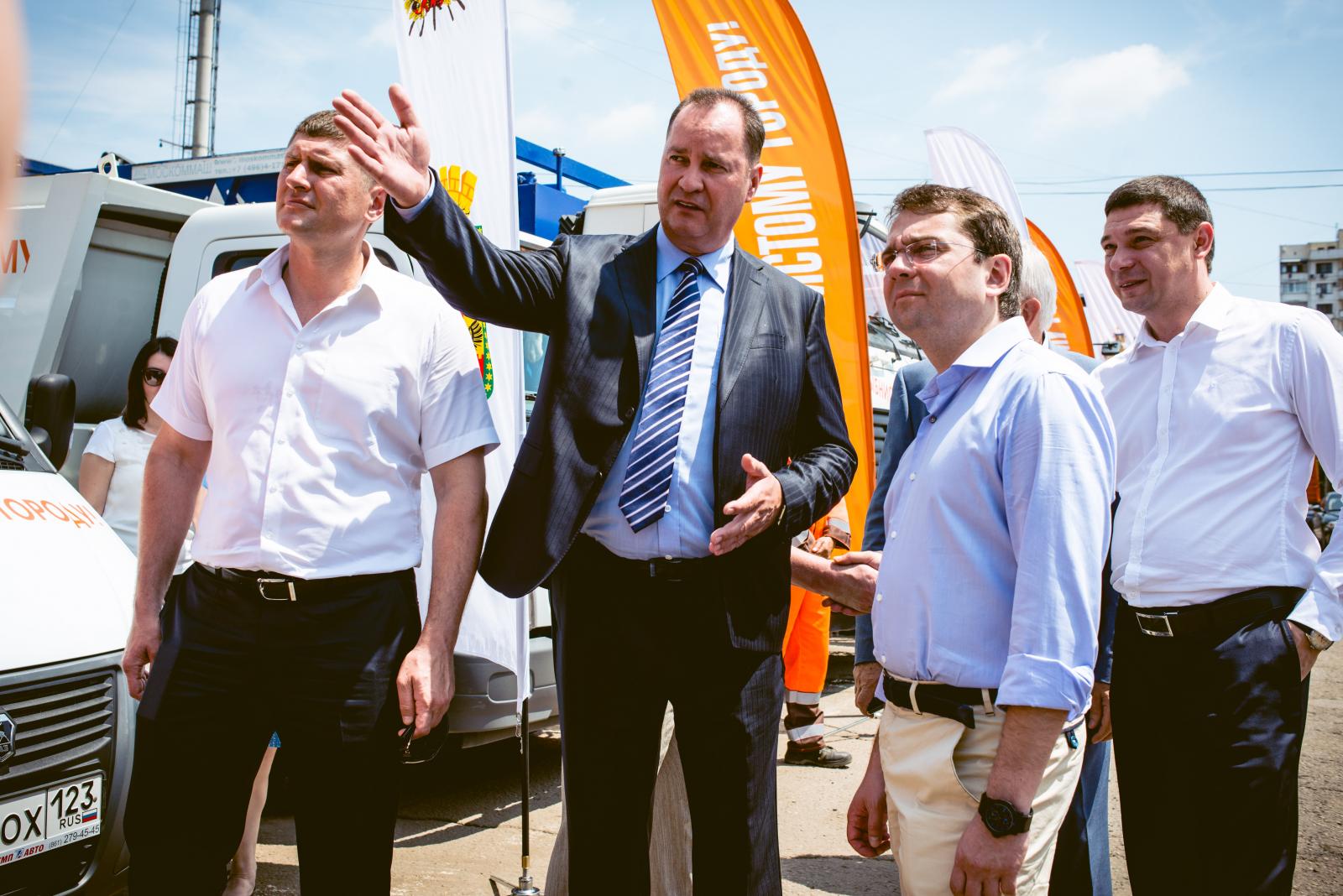В ходе объезда территории города заместитель министра строительства и ЖКХ РФ, вице-губернатор Кубани Андрей Алексеенко, глава Краснодара Евгений Первышов, представители краевой и городской администраций, Общероссийского Народного Фронта (ОНФ), партии «Единая Россия» осмотрели мусороуборочную технику предприятия.