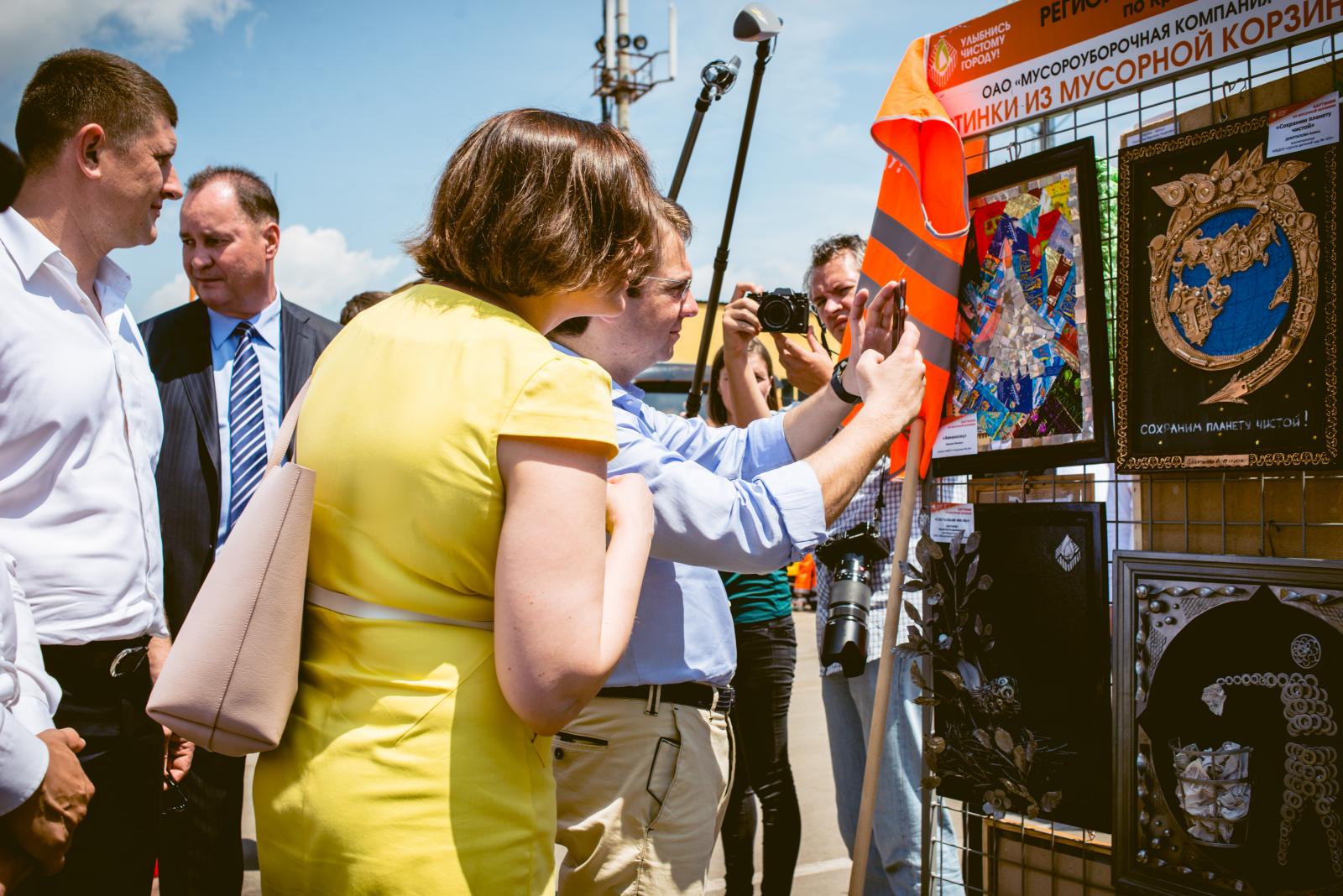 Заместитель министра сел за руль мусороуборочной машины, увидел в работе машину, которая моет контейнеры, осмотрел поливальную и уборочную технику. Также Андрею Чибису показали выставку работ «Картинки из мусорной корзинки», на которой были представлены различные работы из бытового мусора и которая посвящена Году экологии в России.
