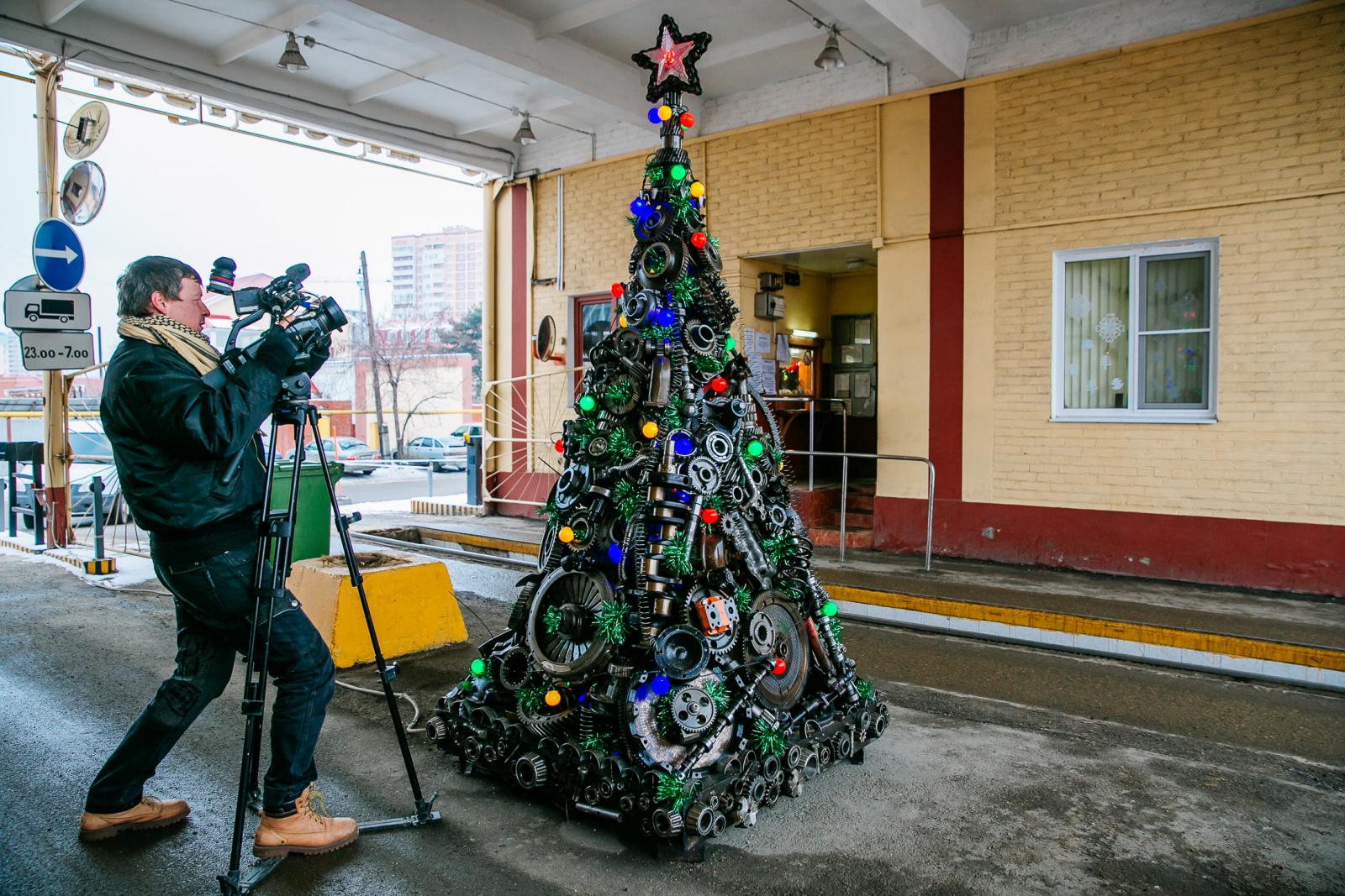 Никто в Анапе не радуется шторму так, как дизайнер Руслан Кумпан. Выброшенные морем на берег коряги — отличный материал. Свои находки он несет в мастерскую, сушит, затем придает нужную форму. На этот раз получилась елка. А краснодарские мусоросборщики сложили елку из… бытовых отходов. Коммунальщики хотели привлечь внимание к проблеме раздельного сбора мусора. Брутальная елочка — еще один краснодарский креатив. Елка собрана из автомобильных деталей.