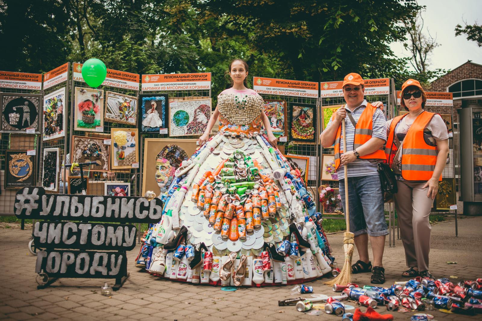 Больше всех привлекает внимание зрителей вот эта гора мусора. Сначала непонятно, что это такое, но на самом деле это настоящее платье.