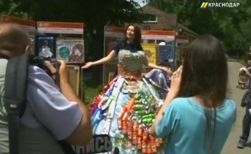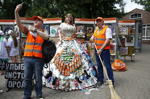 Экологическая, творческая, культурная экспозиция развернулась сегодня в Чистяковской роще. Здесь делают поделки из мусора. Например, прекрасных лебедей сделали из использованной бумаги, а там делают поделки из природного мусора.– Из мусора можно делать профессиональные картины, – рассказала корреспондент Анастасия Лисова. – Вот, к примеру «Черный квадрат», конечно, не Малевича, но он весь действительно черный. Здесь фотоаппарат и тюбики из-под использованной туши для ресниц. Еще мне понравилась одна картина – ну, конечно, я же ведь девушка – «О чем думают девушки». Здесь фантики от конфет и картинки разной косметики, а челка девушки сделана из использованных вилок.